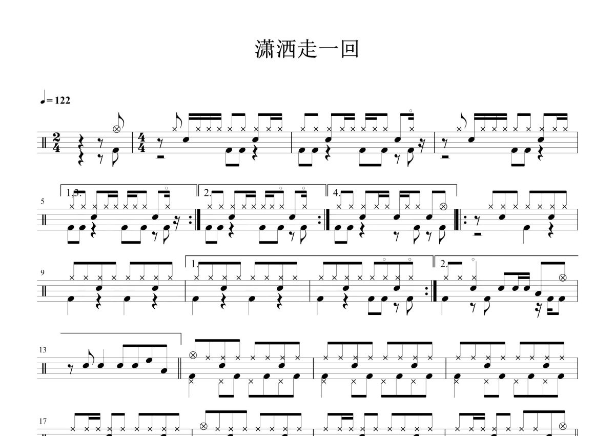 《潇洒走一回》是二手玫瑰演唱的一首歌曲,这份鼓谱共有三张高清图谱,图谱由 @打鼓谱 编配上传,图谱使用五线谱编配,使用这份潇洒走一回架子鼓谱,你将能够轻松地敲打出这首二手玫瑰的潇洒走一回,快来尝试吧。乐队里最好的二人转。