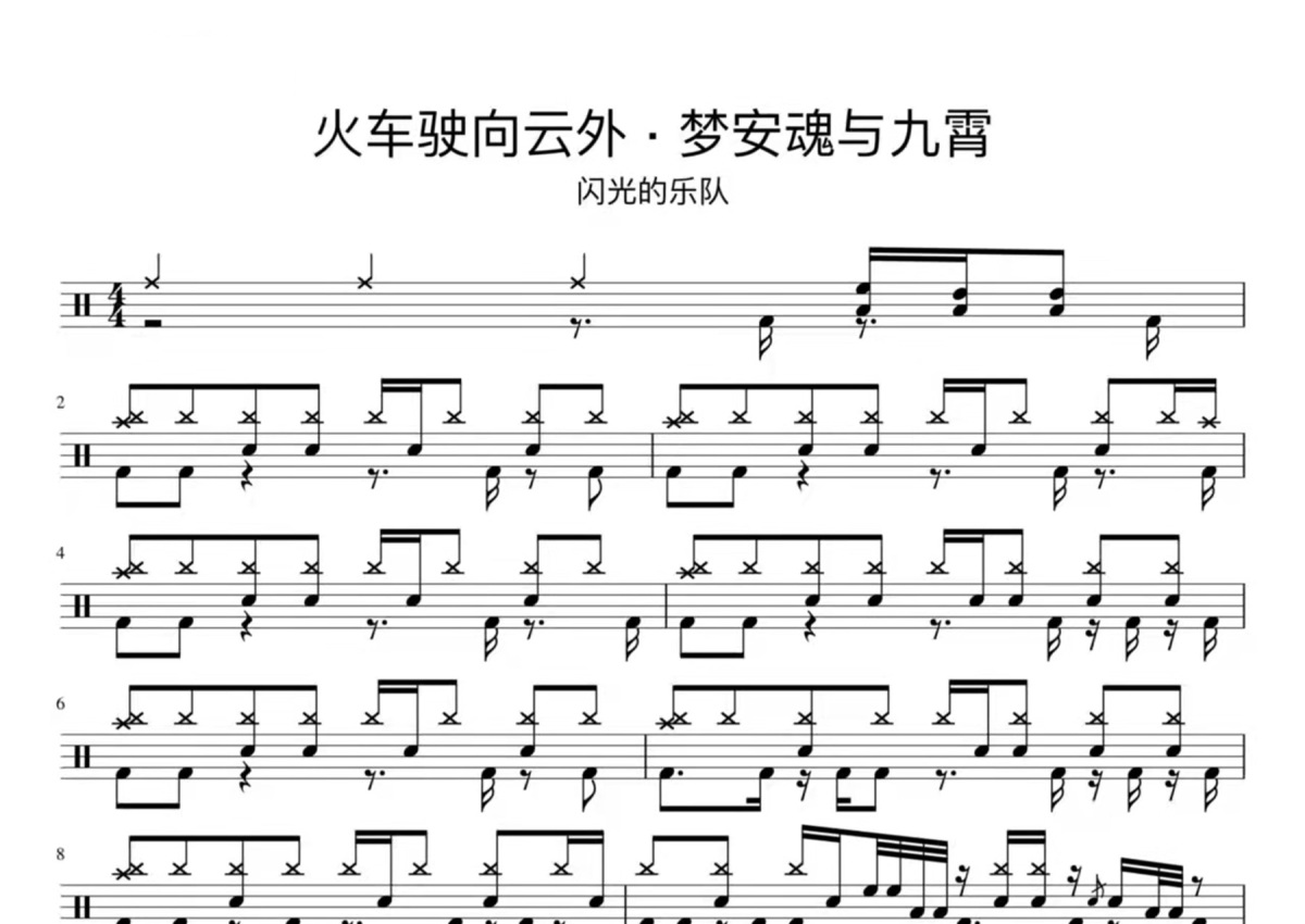 闪光的乐队《火车驶向云外-梦安魂与九霄》鼓谱 - 架子鼓谱