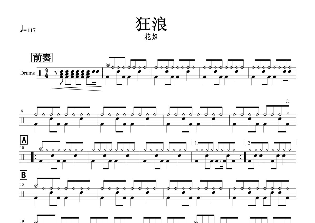 花姐《狂浪》鼓谱 - 架子鼓谱