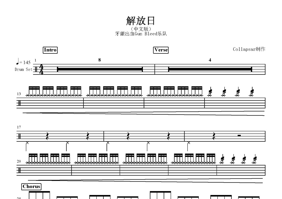 牙龈出血Gum Bleed乐队《解放日》鼓谱 - 架子鼓谱 - 中文版