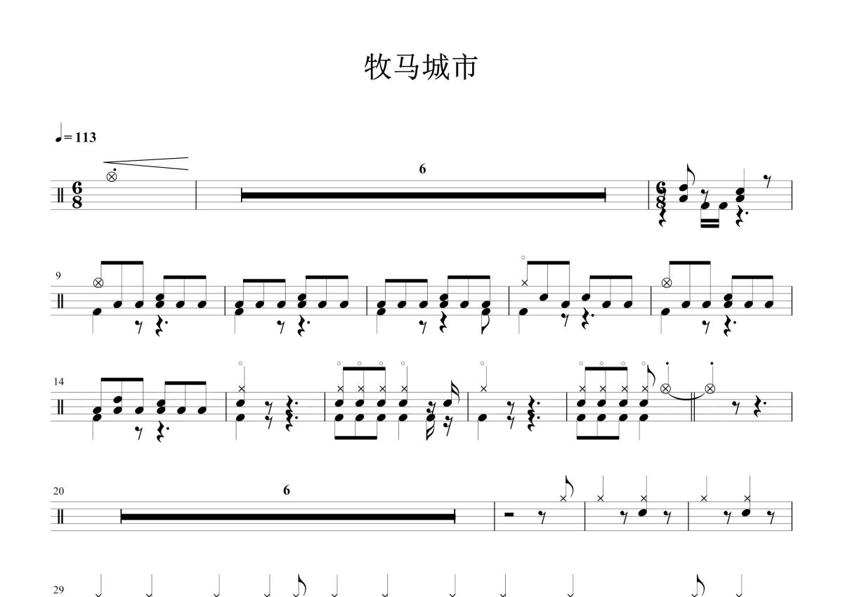 毛不易《牧马城市》鼓谱 - 架子鼓谱