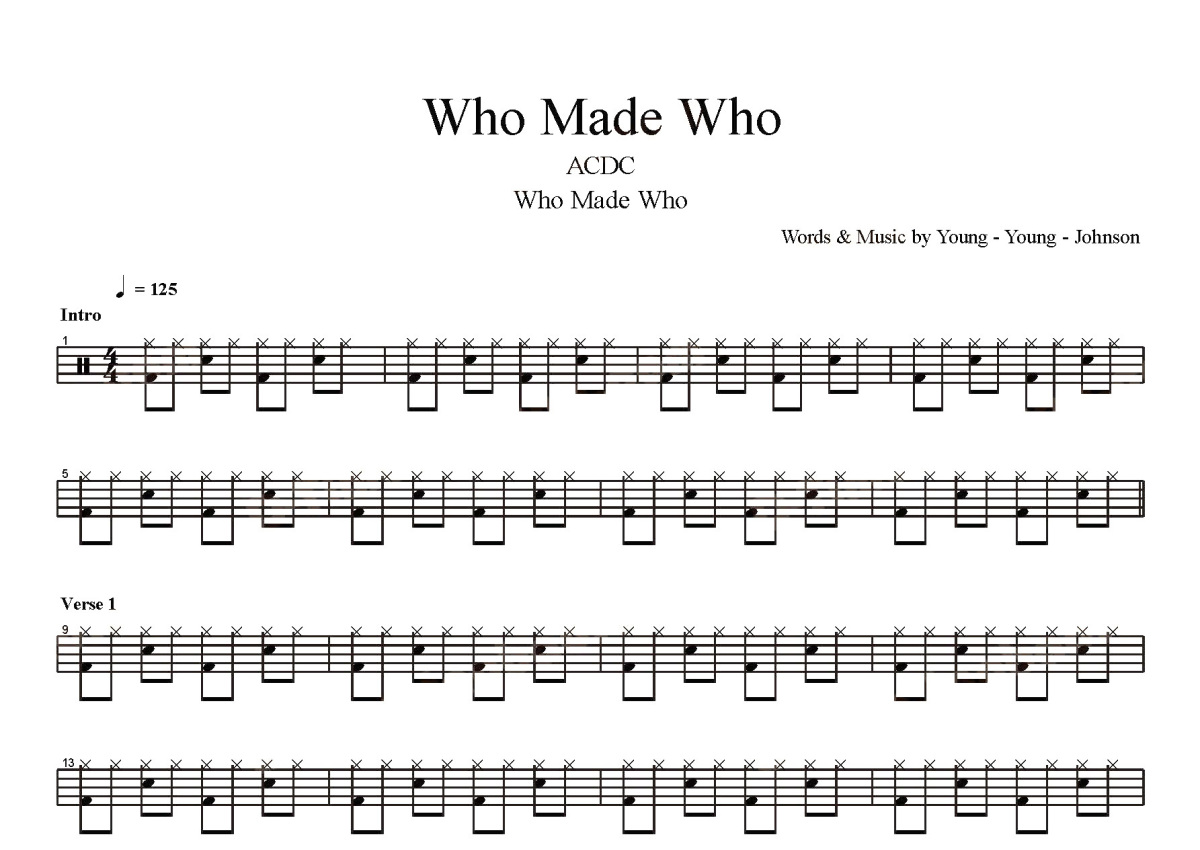 《Who Made Who》是ACDC演唱的一首歌曲,这份鼓谱共有三张高清图谱,图谱由 @打鼓谱 编配上传,图谱使用五线谱编配,使用这份Who Made Who架子鼓谱,你将能够轻松地敲打出这首ACDC的Who Made Who,快来尝试吧。 Digitally remastered European vinyl LP pressing of this 1986 release from the Australian Hard Rockers, reissued to coincide with their 2008 studio release and world tour. Nine tracks. Sony/BMG。