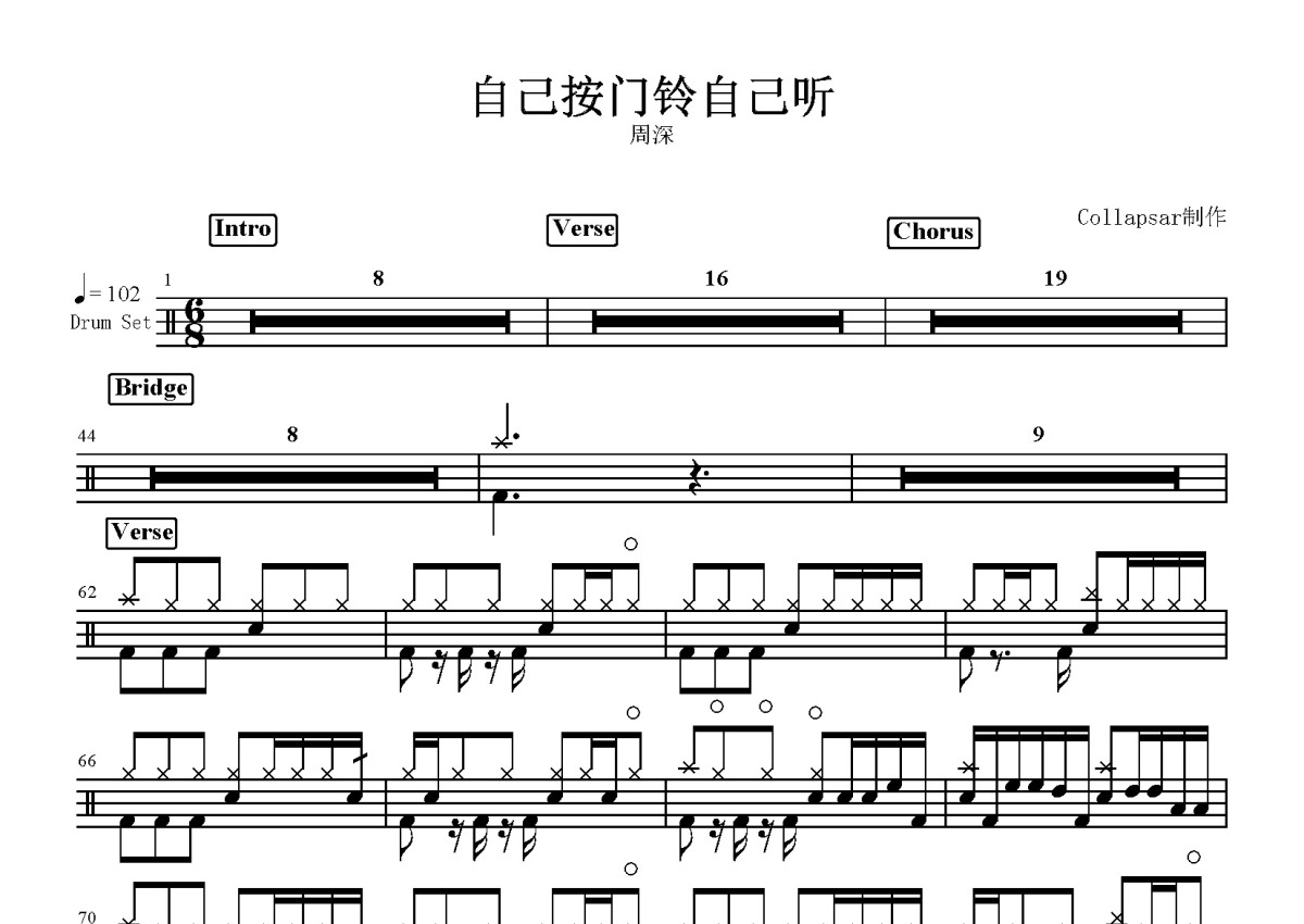 周深《自己按门铃自己听》鼓谱 - 架子鼓谱