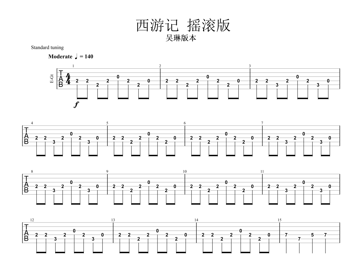 摇滚版《西游记》电吉他谱 - 吴琳超HI版本