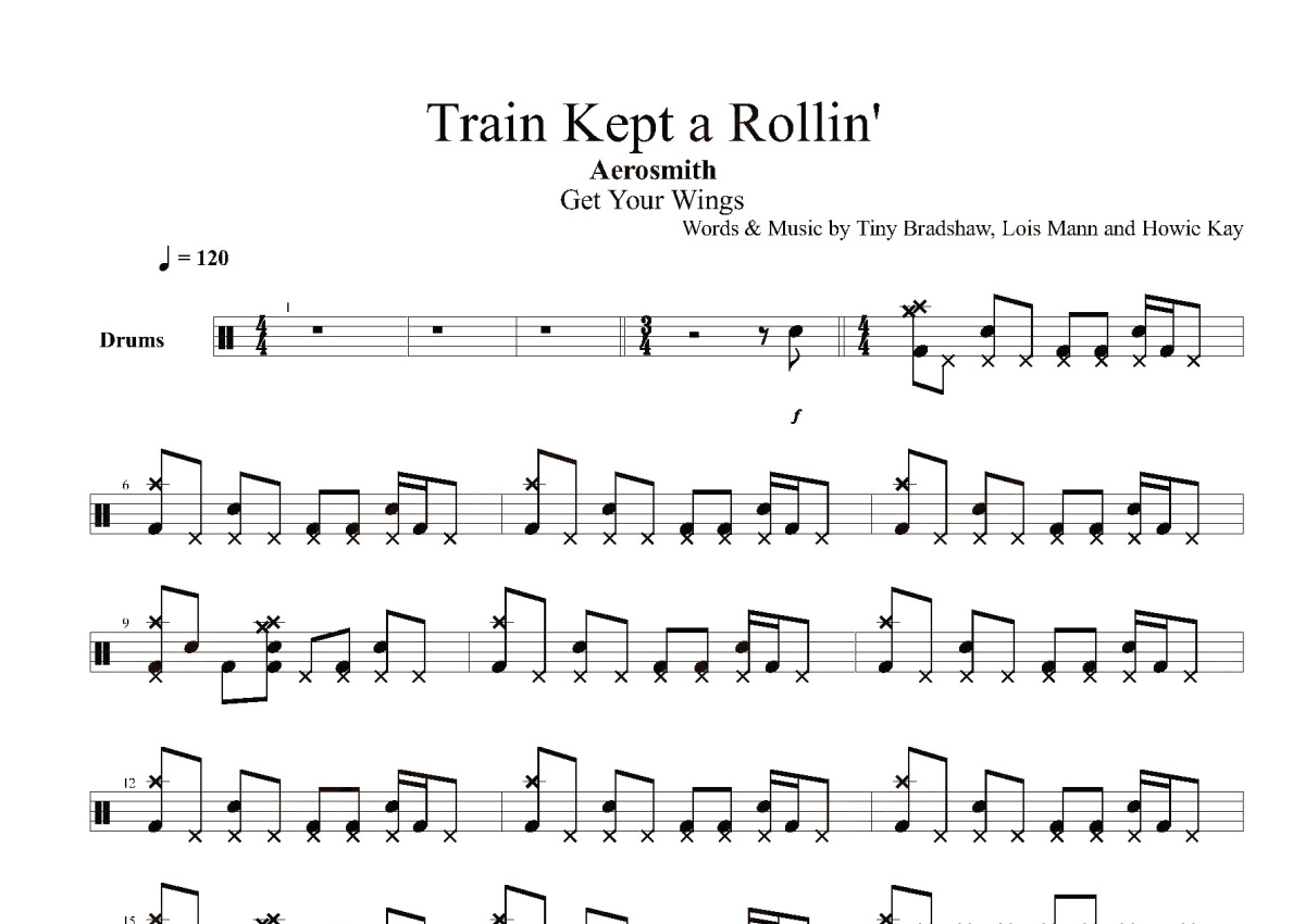 《Train Kept A Rollin》是Aerosmith演唱的一首歌曲,这份鼓谱共有六张高清图谱,图谱由 @打鼓谱 编配上传,图谱使用五线谱编配,使用这份Train Kept A Rollin架子鼓谱,你将能够轻松地敲打出这首Aerosmith的Train Kept A Rollin,快来尝试吧。歌曲名:Train Kept A Rollin'