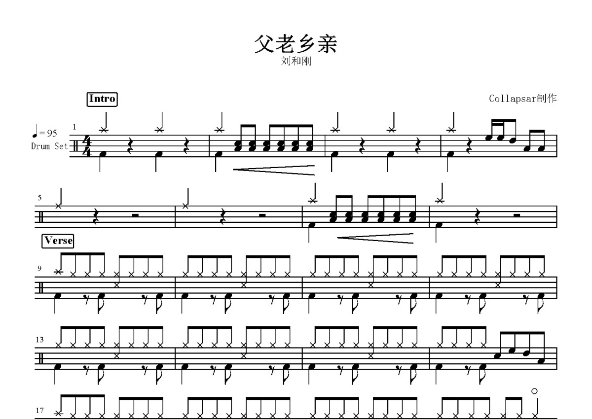刘和刚《父老乡亲》鼓谱 - 架子鼓谱