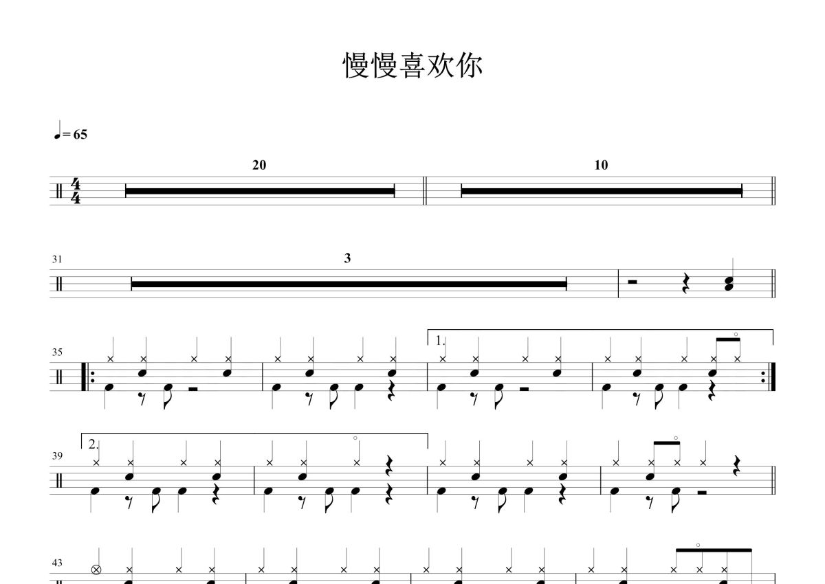 莫文蔚《慢慢喜欢你》鼓谱 - 架子鼓谱