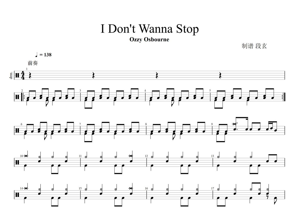 Ozzy Osbourne《I Don't Wanna Stop》鼓谱 - 架子鼓谱