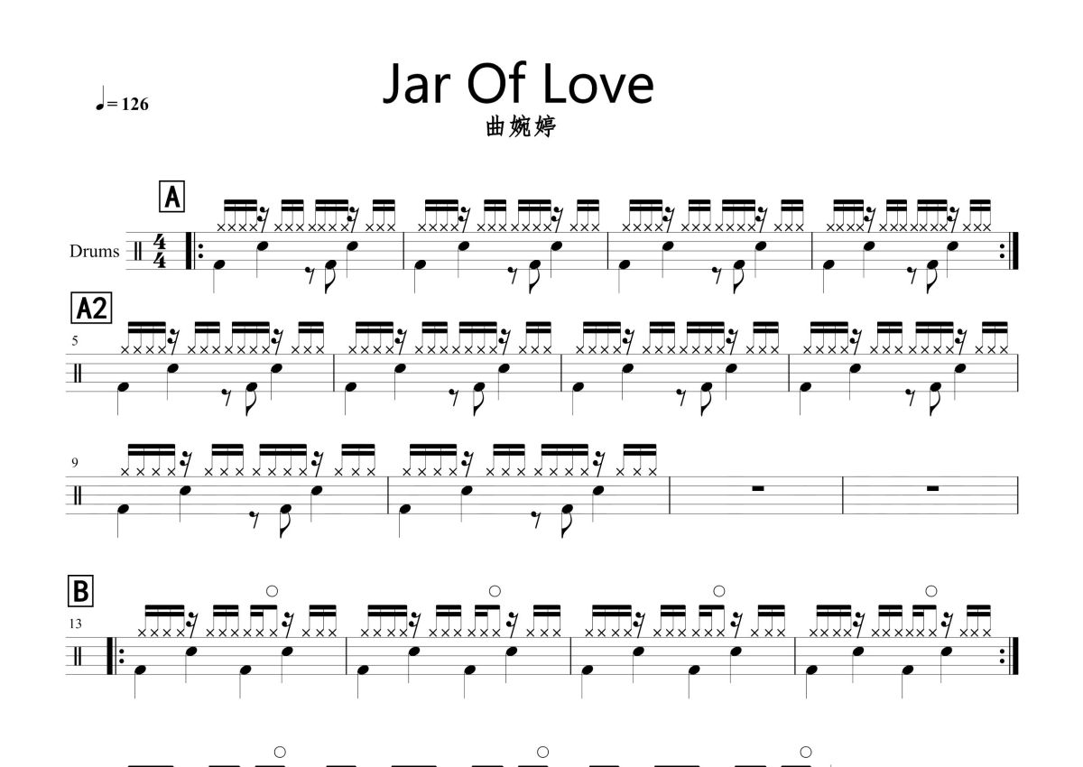 曲婉婷《Jar of Love》鼓谱 - 架子鼓谱