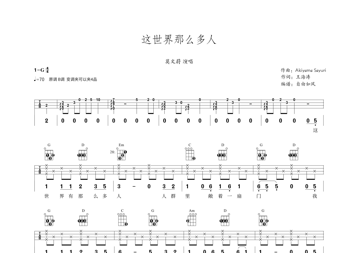 莫文蔚《这世界那么多人》尤克里里谱 - G调尤克里里谱 - 分解和弦、扫弦