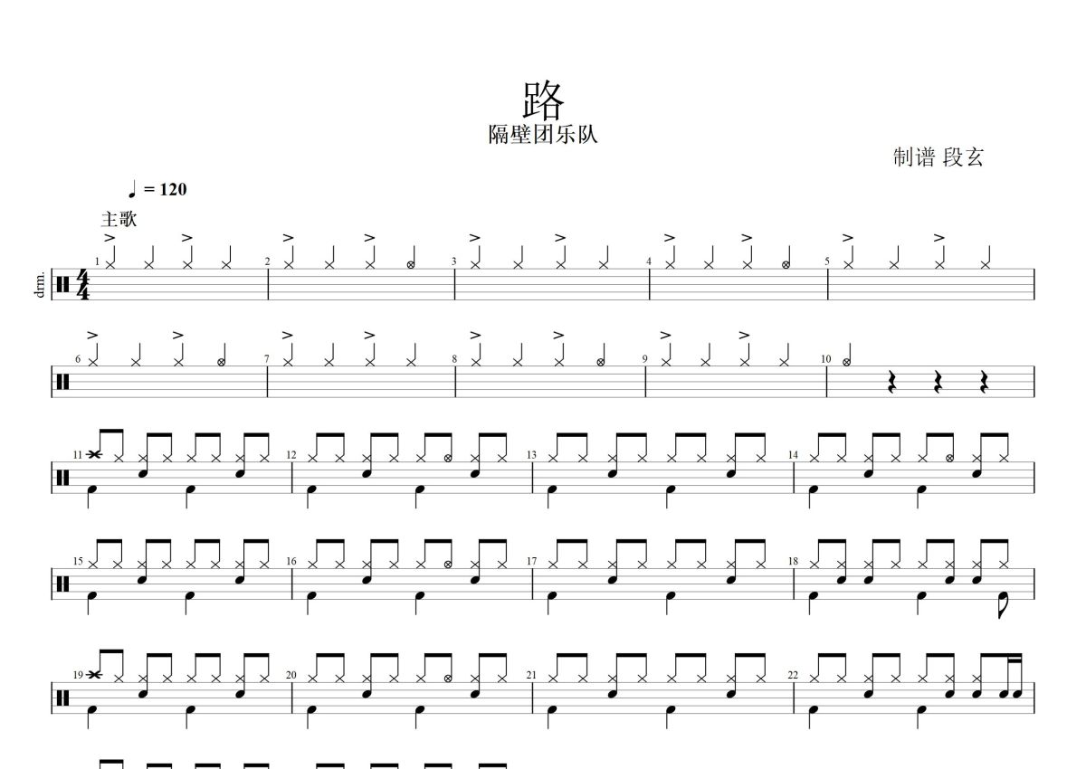 隔壁团乐队《路》鼓谱 - 架子鼓谱