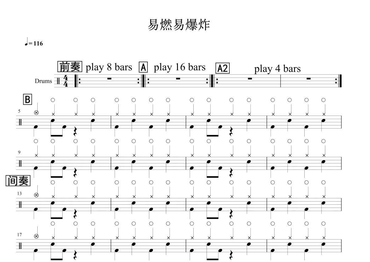 陈粒《易燃易爆炸》鼓谱 - 架子鼓谱