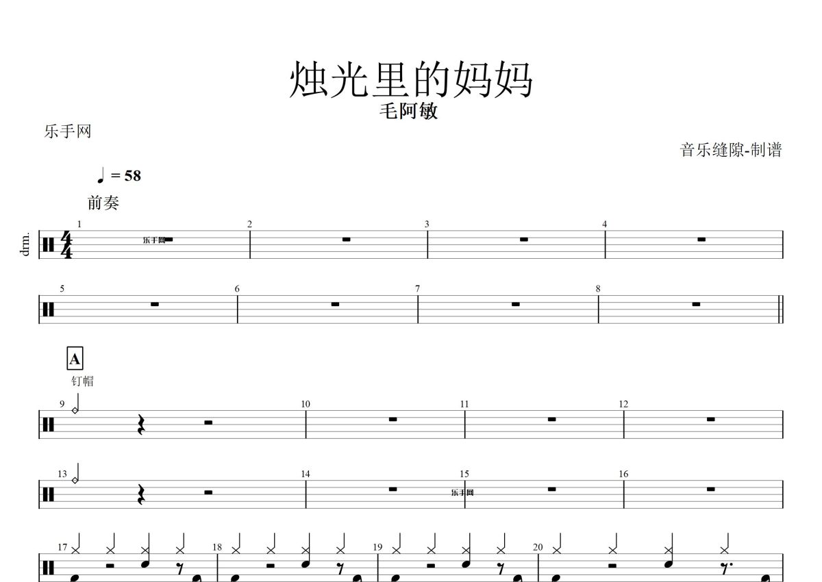 毛阿敏《烛光里的妈妈》鼓谱 - 架子鼓谱
