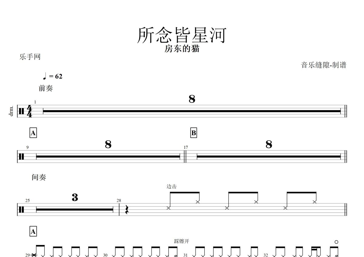 房东的猫《所念皆星河》鼓谱 - 架子鼓谱