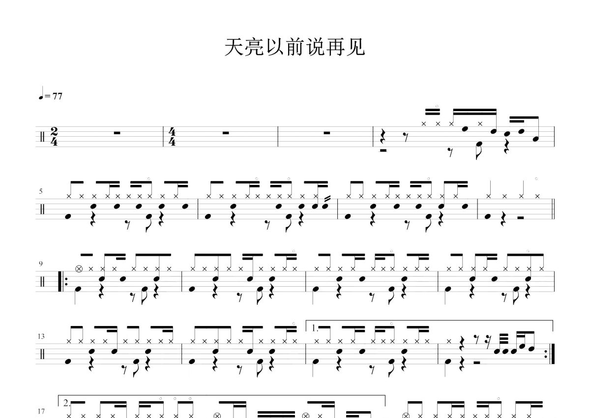 何野《天亮以前说再见》鼓谱 - 架子鼓谱