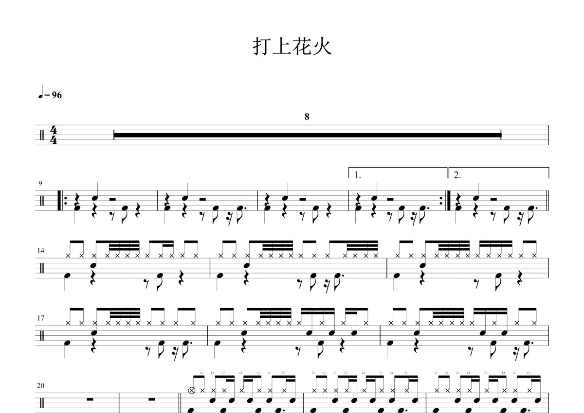 《打上花火》是DAOKO&米津玄師演唱的一首歌曲,这份鼓谱共有三张高清图谱,图谱由 @打鼓谱 编配上传,图谱使用五线谱编配,使用这份打上花火架子鼓谱,你将能够轻松地敲打出这首DAOKO&米津玄師的打上花火,快来尝试吧。《打上花火》(打ち上げ花火)是由米津玄师填词、谱曲并与DAOKO共同演唱的歌曲,发布于2017年8月16日,是动画电影《升起的烟花,从下面看?还是从侧面看?》的主题曲。
