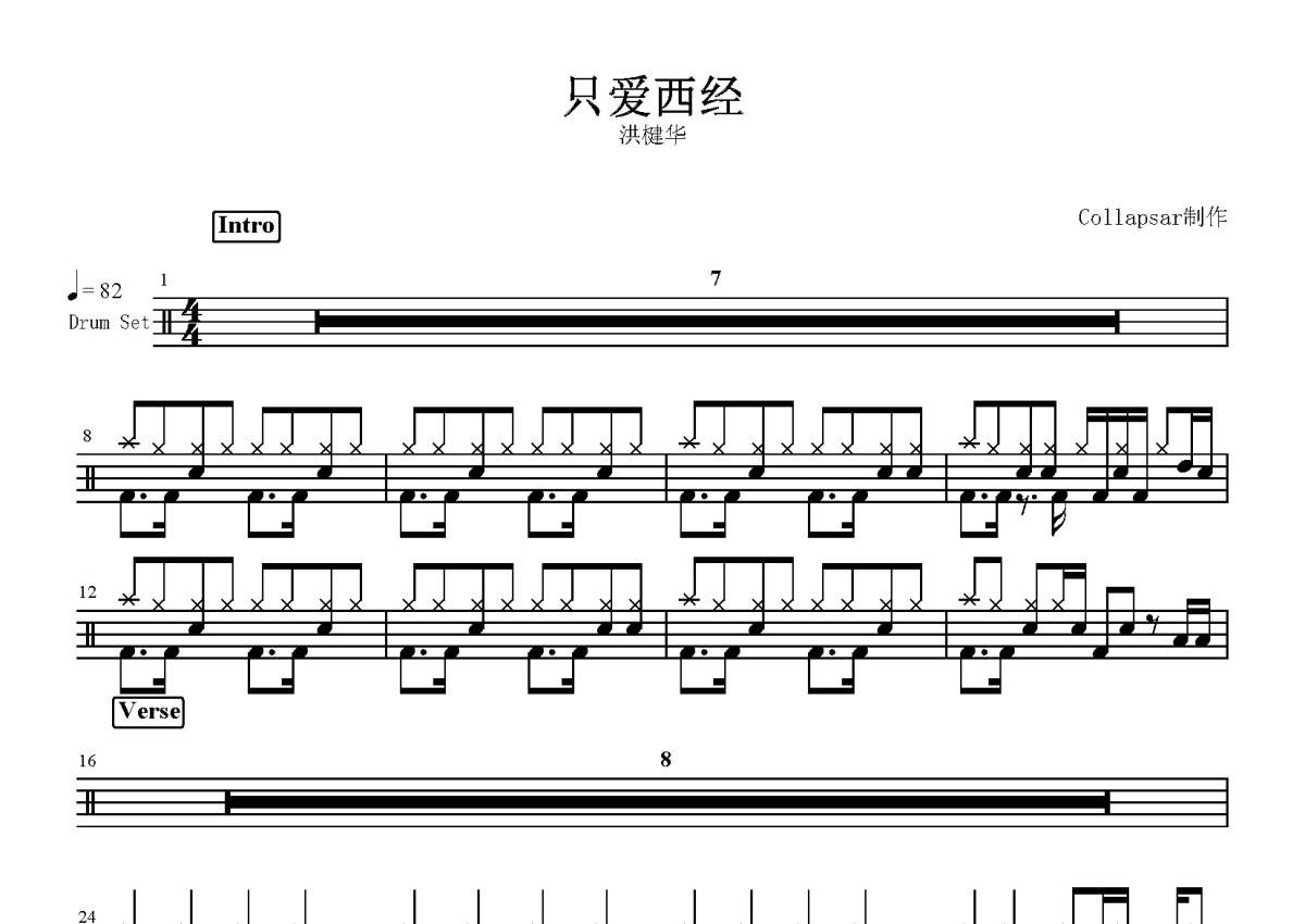 洪建华《只爱西经》鼓谱 - 架子鼓谱