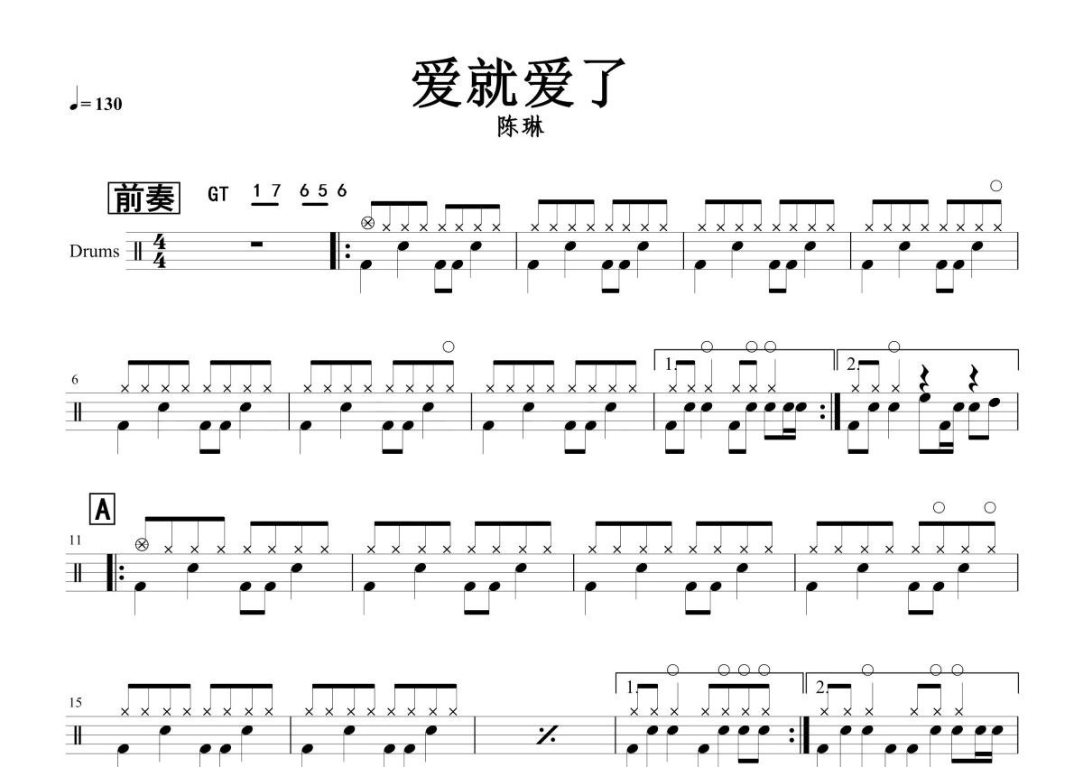 陈琳《爱就爱了》鼓谱 - 架子鼓谱