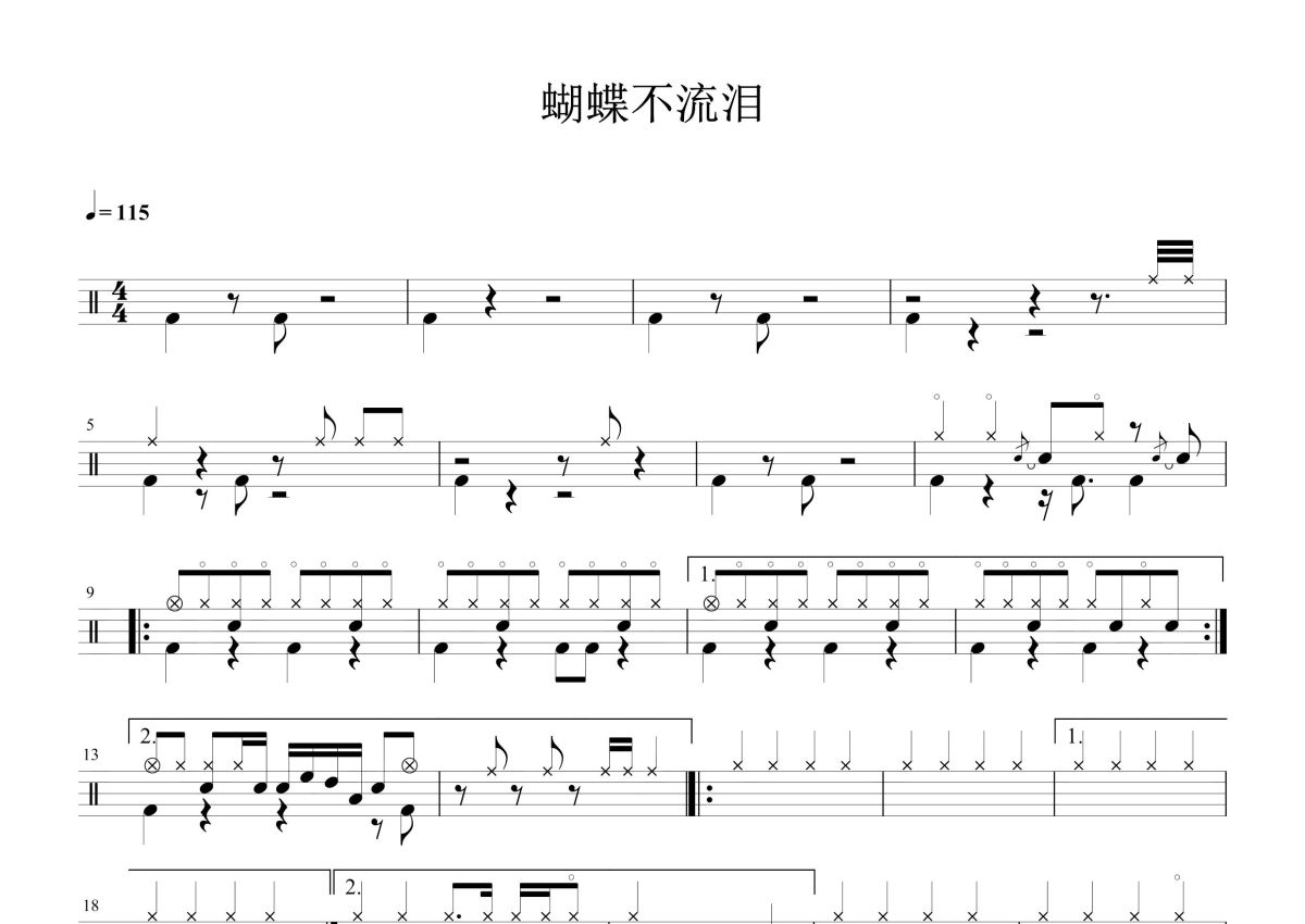 耿嘉涓渼《蝴蝶不流泪》鼓谱 - 架子鼓谱