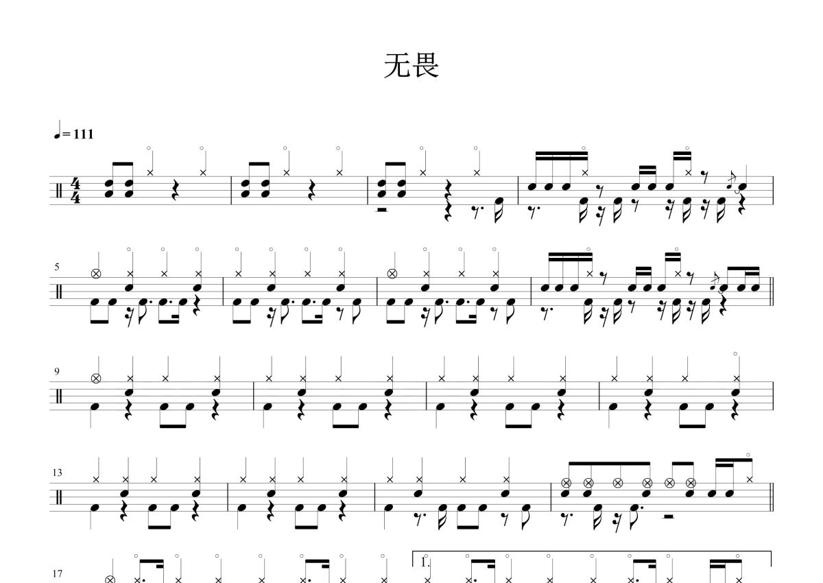 《无畏》是黑豹乐队演唱的一首歌曲,这份鼓谱共有三张高清图谱,图谱由 @打鼓谱 编配上传,图谱使用五线谱编配,使用这份无畏架子鼓谱,你将能够轻松地敲打出这首黑豹乐队的无畏,快来尝试吧。《无畏》是由张淇、汤浩作词,张淇作曲,黑豹乐队演唱的一首歌曲,收录于专辑《本色》中,发行于2017年04月21日。