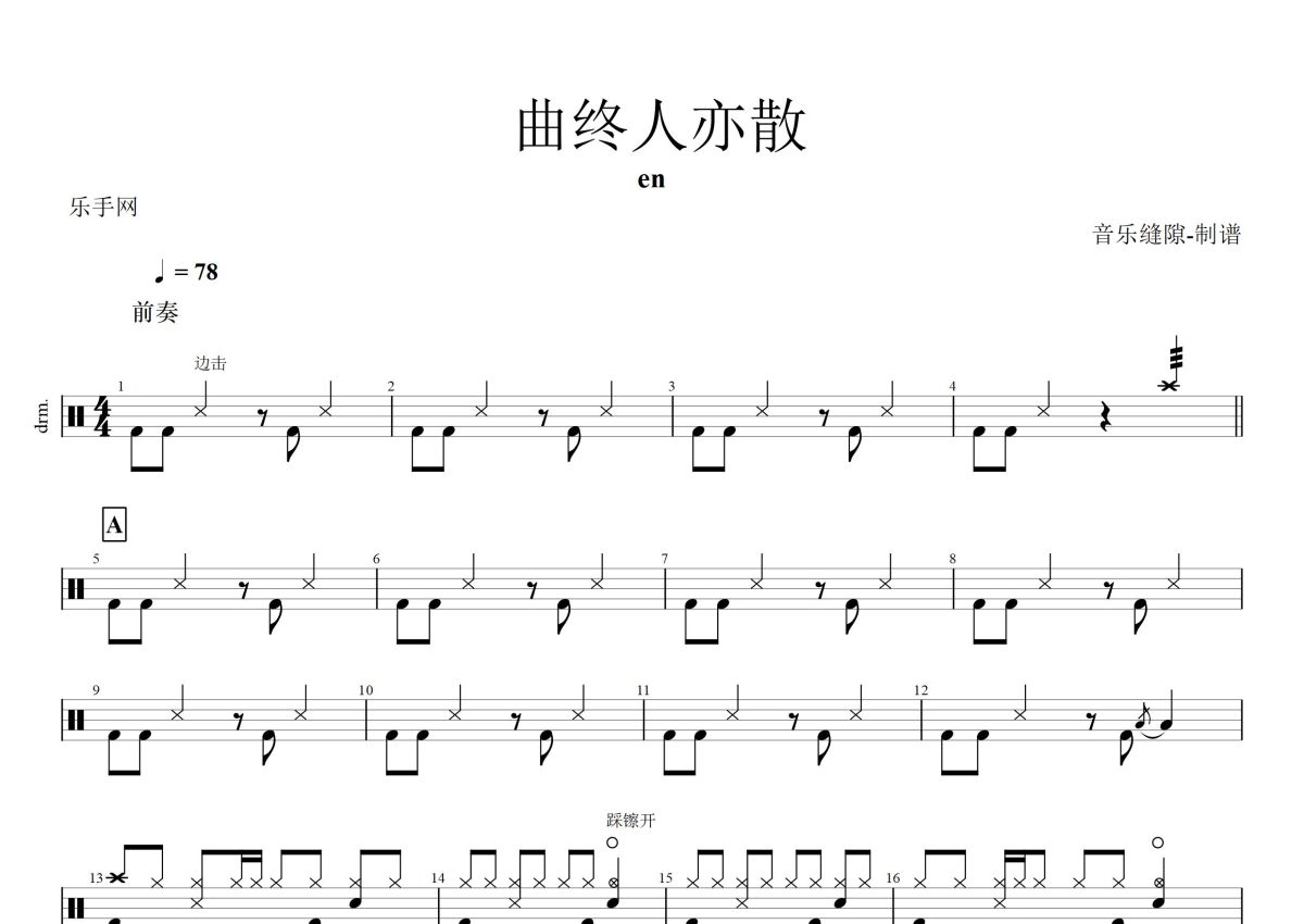 en《曲终人亦散》鼓谱 - 架子鼓谱