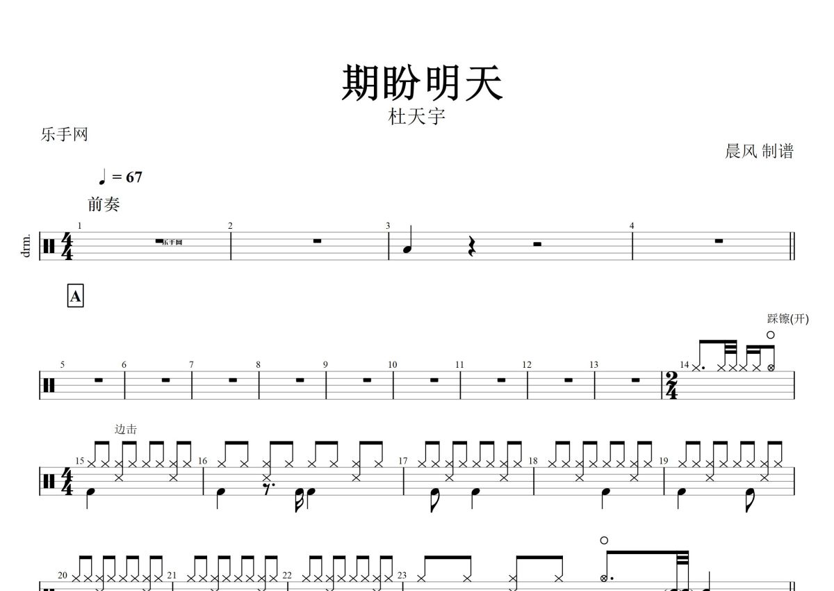 杜天宇《期盼明天》鼓谱 - 架子鼓谱