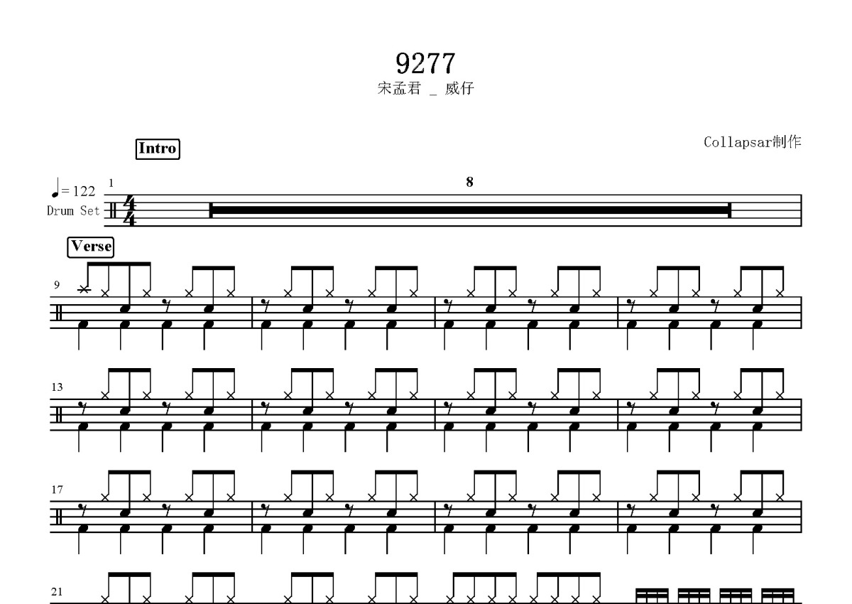 宋孟君和威仔《9277》鼓谱 - 架子鼓谱