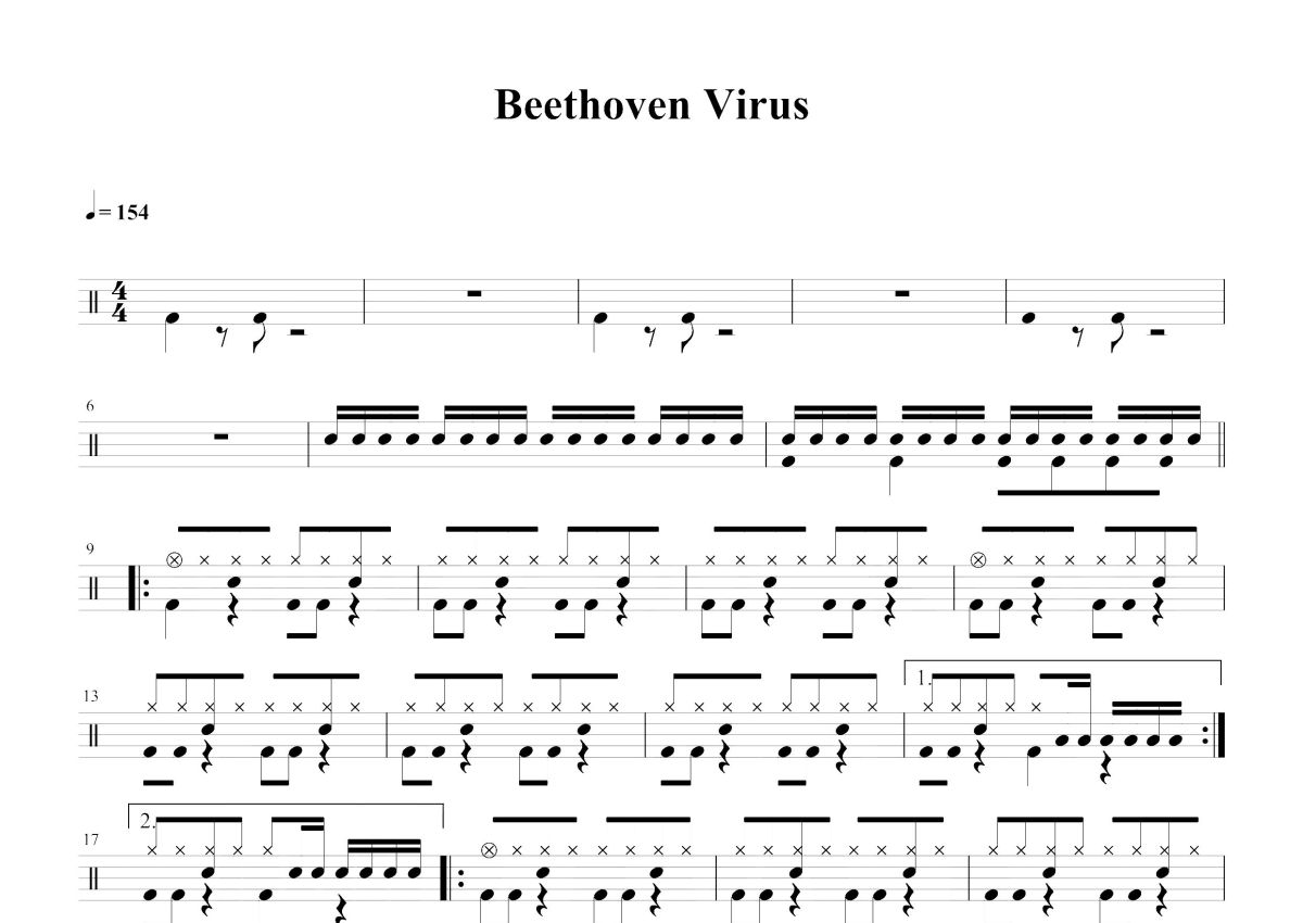 《贝多芬病毒》是Diana Boncheva演唱的一首歌曲,这份鼓谱共有三张高清图谱,图谱由 @打鼓谱 编配上传,图谱使用五线谱编配,使用这份贝多芬病毒架子鼓谱,你将能够轻松地敲打出这首Diana Boncheva的贝多芬病毒,快来尝试吧。保加利亚著名电子小提琴家Diana Boncheva演奏的《Beethoven Virus贝多芬病毒》,Diana Boncheva公司2011-04-09 发行。