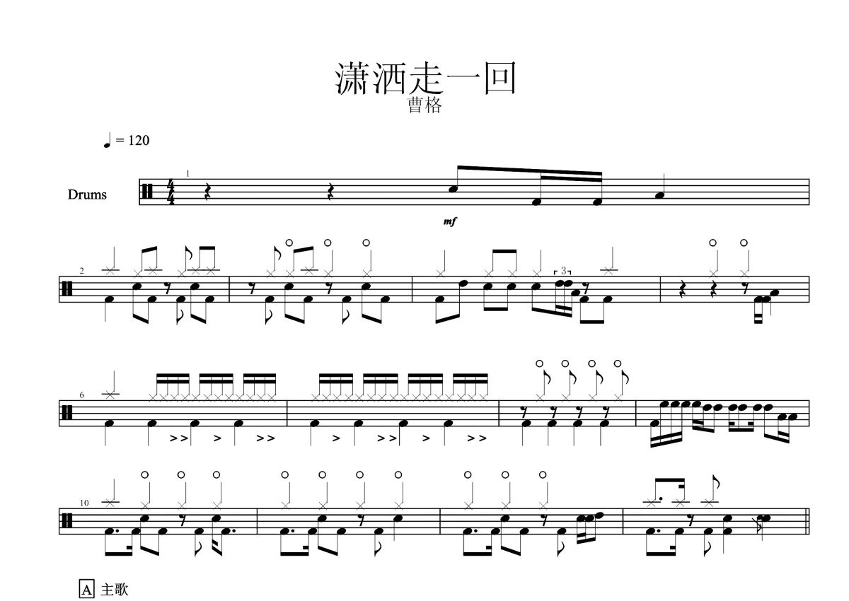 曹格《潇洒走一回》鼓谱 - 架子鼓谱