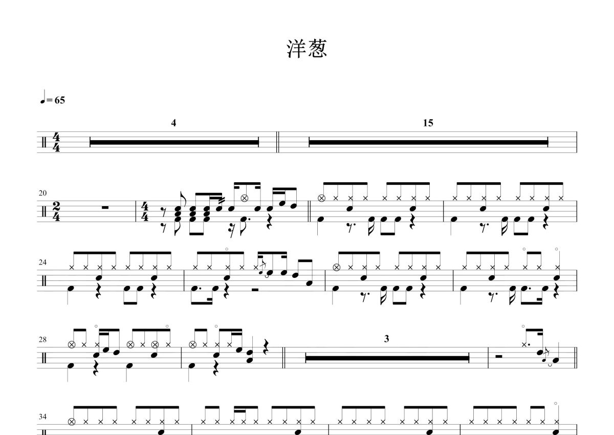 《洋葱》是五月天乐队演唱的一首歌曲,这份鼓谱共有两张高清图谱,图谱由 @打鼓谱 编配上传,图谱使用五线谱编配,使用这份洋葱架子鼓谱,你将能够轻松地敲打出这首五月天乐队的洋葱,快来尝试吧。《洋葱》由阿信作词作曲 [1] ,收录于2013年12月30日发行的精选集《步步 the Best of 1999~2013 自选作品辑》中,原为阿信写给杨宗纬的一首歌曲。这首歌由五月天的阿信创作、杨宗纬原唱,收录于杨宗纬2008年专辑《鸽子》当中。