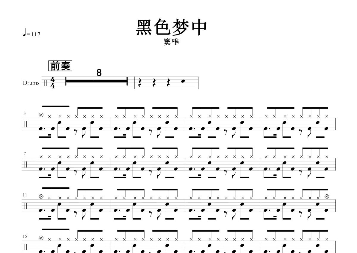 《黑色梦中》是窦唯演唱的一首歌曲,这份鼓谱共有三张高清图谱,图谱由 @打鼓谱 编配上传,图谱使用五线谱编配,使用这份黑色梦中架子鼓谱,你将能够轻松地敲打出这首窦唯的黑色梦中,快来尝试吧。收录于窦唯1994年发行的专辑《黑梦》中。收录与专辑中的歌曲也以黑色为主色调,透出一种黑色梦境的迷幻色彩。