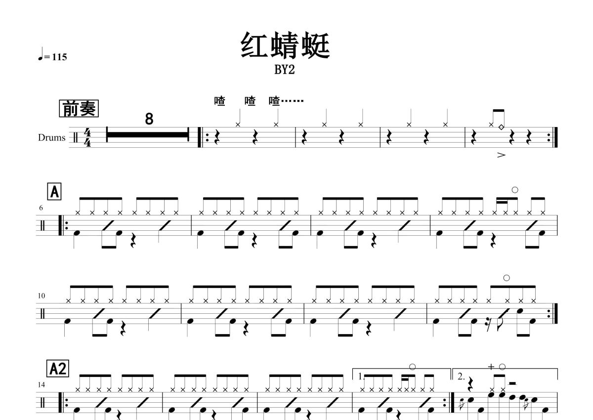 BY2《红蜻蜓》鼓谱 - 架子鼓谱