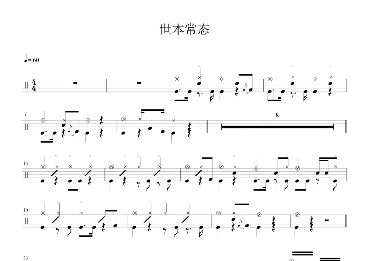 《世本常态》是段炼演唱的一首歌曲,这份鼓谱共有两张高清图谱,图谱由 @打鼓谱 编配上传,图谱使用五线谱编配,使用这份世本常态架子鼓谱,你将能够轻松地敲打出这首段炼的世本常态,快来尝试吧。。