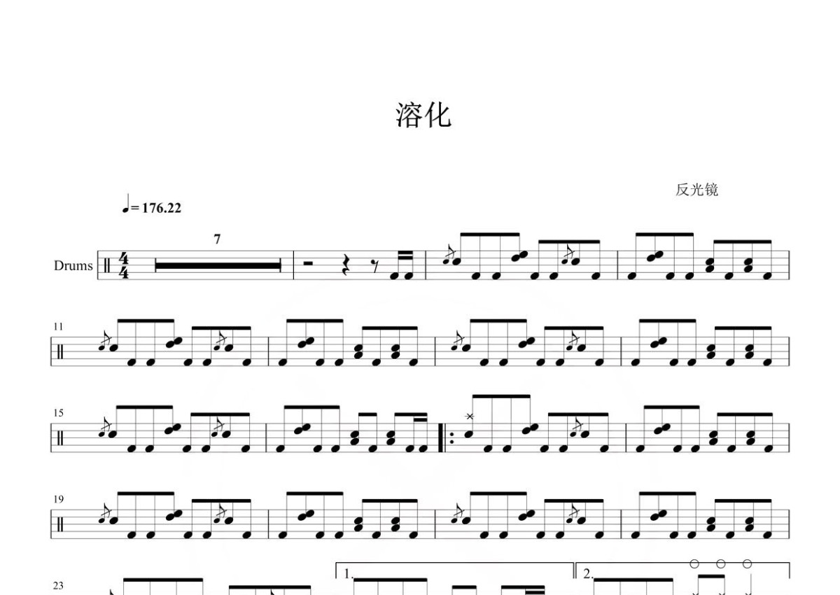 反光镜乐队《溶化》鼓谱 - 架子鼓谱
