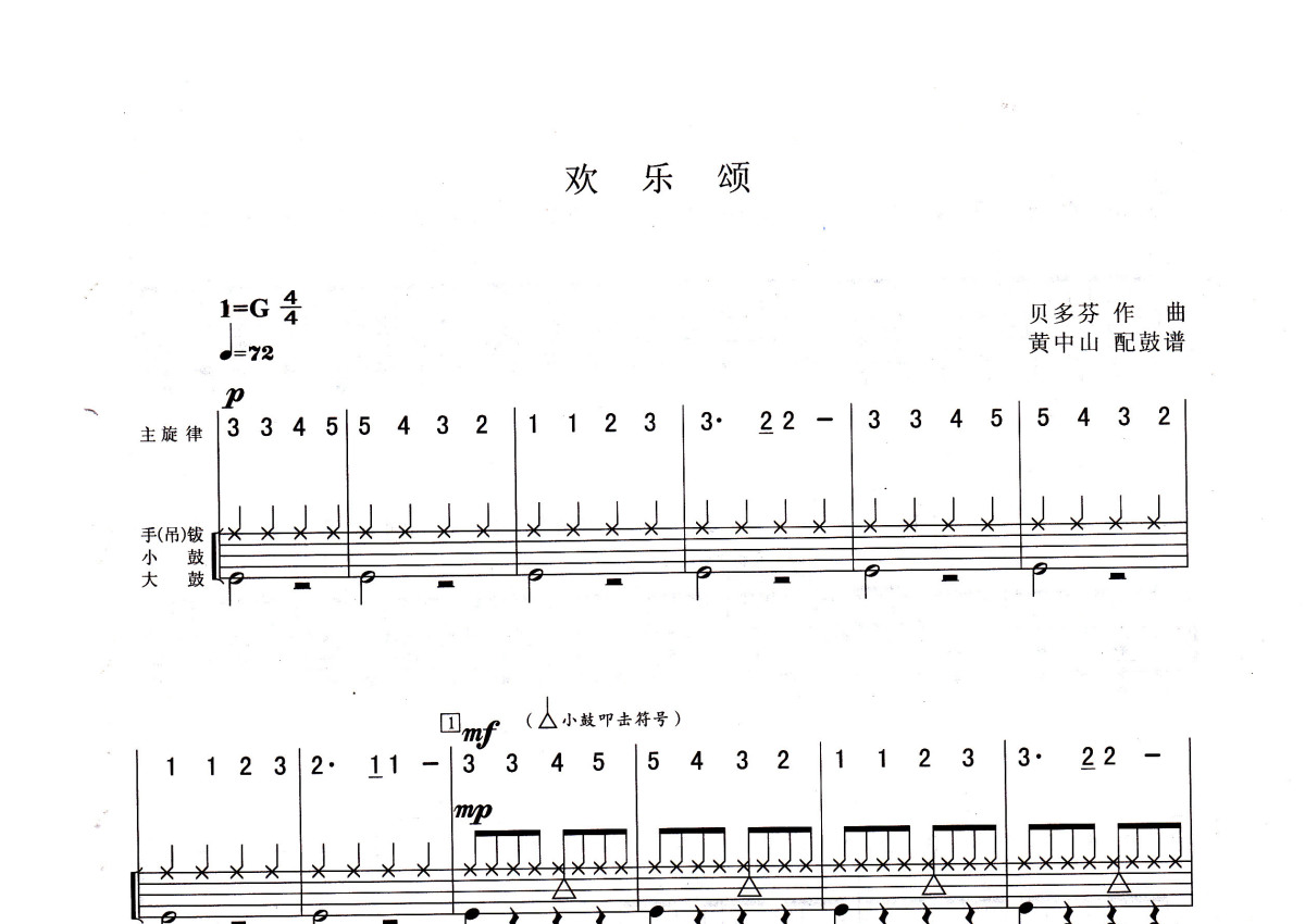 《欢乐颂》是儿歌精选演唱的一首歌曲,这份鼓谱共有两张高清图谱,图谱由 @打鼓谱 编配上传,图谱使用五线谱编配,使用这份欢乐颂架子鼓谱,你将能够轻松地敲打出这首儿歌精选的欢乐颂,快来尝试吧。《欢乐颂》,又称《快乐颂》(德语为Ode an die Freude),是在1785年由德国诗人席勒所写的诗歌。 [1] 贝多芬为之谱曲,成为他的第九交响曲第四乐章的主要部分,包含四独立声部、合唱、乐团。而这由贝多芬所谱曲的音乐(不包含文字)成为了现今欧洲联盟的盟歌、欧洲委员会会歌,亦曾被用作罗德西亚1974-1979年国歌《扬起罗德西亚的声音》的旋律。
