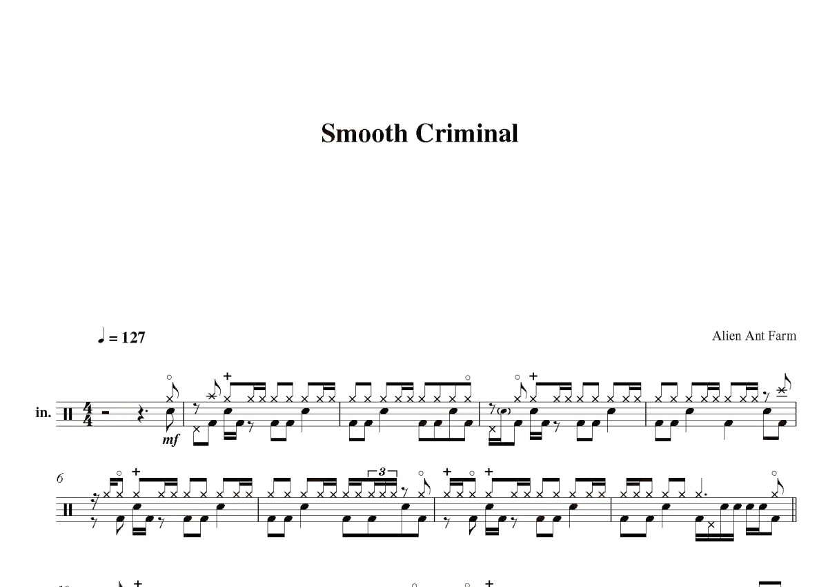《smooth criminal》是Michael Jackson演唱的一首歌曲,这份鼓谱共有三张高清图谱,图谱由 @打鼓谱 编配上传,图谱使用五线谱编配,使用这份smooth criminal架子鼓谱,你将能够轻松地敲打出这首Michael Jackson的smooth criminal,快来尝试吧。《犯罪高手(Smooth Criminal)》是世界流行天王迈克尔·杰克逊(Michael Jackson)发行于1988年11月的专辑《Bad》中的第7支单曲。该曲第一次播放是在迈克尔·杰克逊主演的电影《外星战将》中,电影中,安妮(Annie)被坏人捉去,迈克尔·杰克逊变成汽车后来到一间酒吧,歌曲便用音乐完成了讯问安妮的下落。