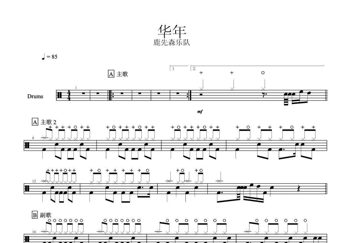 鹿先森乐队《华年》鼓谱 - 架子鼓谱