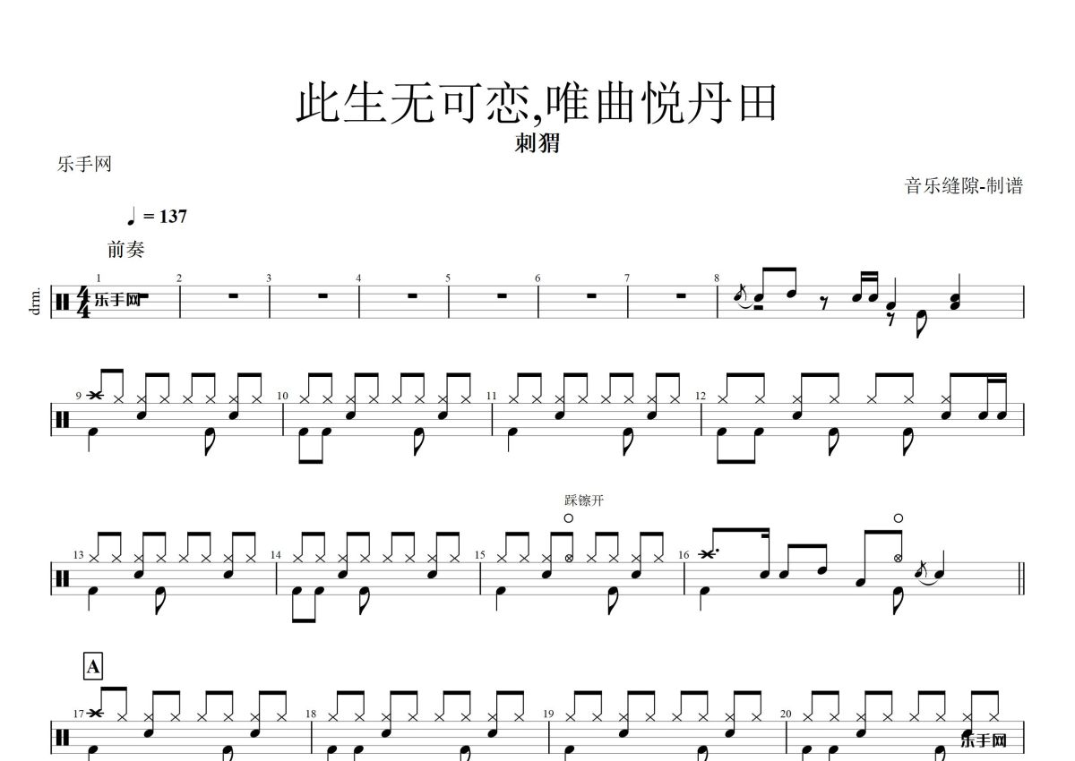 刺猬乐队《此生无可恋,唯曲悦丹田》鼓谱 - 架子鼓谱