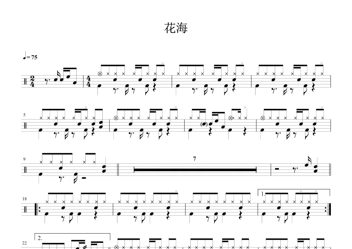 周杰伦《花海》鼓谱 - 架子鼓谱