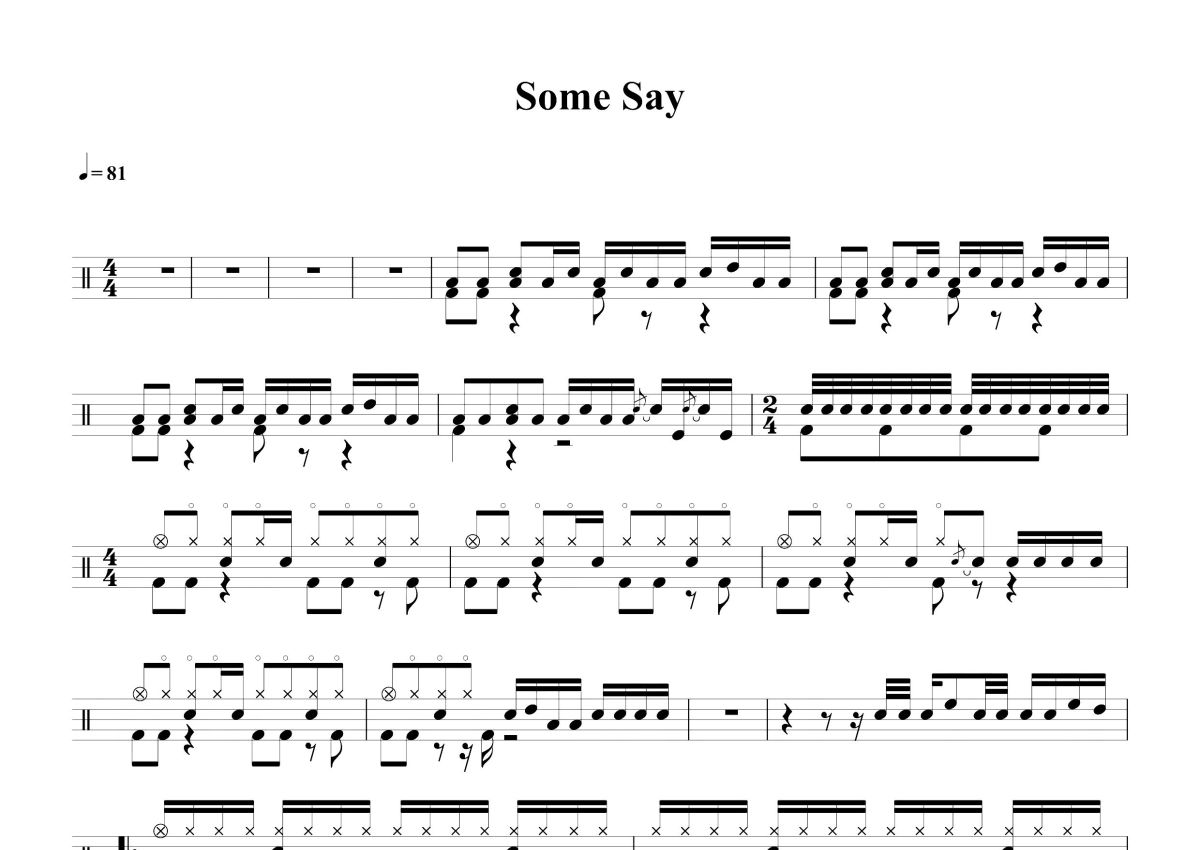《Some Say》是Sum 41演唱的一首歌曲,这份鼓谱共有两张高清图谱,图谱由 @打鼓谱 编配上传,图谱使用五线谱编配,使用这份Some Say架子鼓谱,你将能够轻松地敲打出这首Sum 41的Some Say,快来尝试吧。《some say》是由Sum 41演唱的歌曲。该曲收录于Sum 412004年10月12日发行的专辑《Chuck》中。