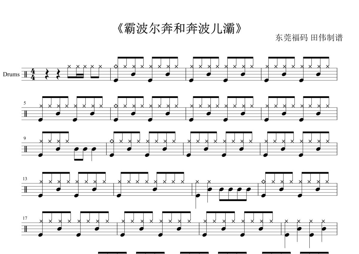 作 词关雷作 曲黄伟涛《奔波儿灞与霸波尔奔》鼓谱 - 架子鼓谱
