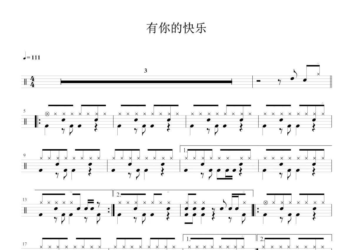王若琳《有你的快乐》鼓谱 - 架子鼓谱