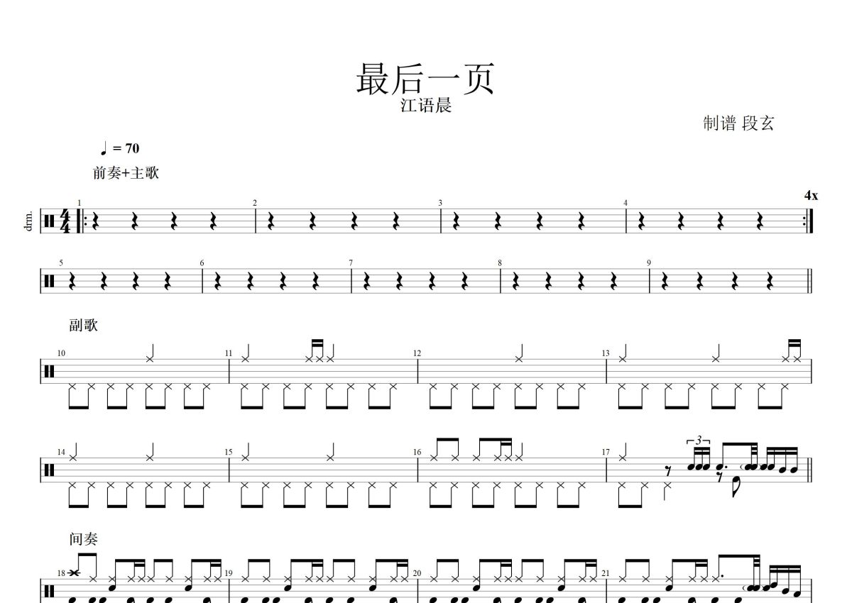 江语晨《最后一页》鼓谱 - 架子鼓谱