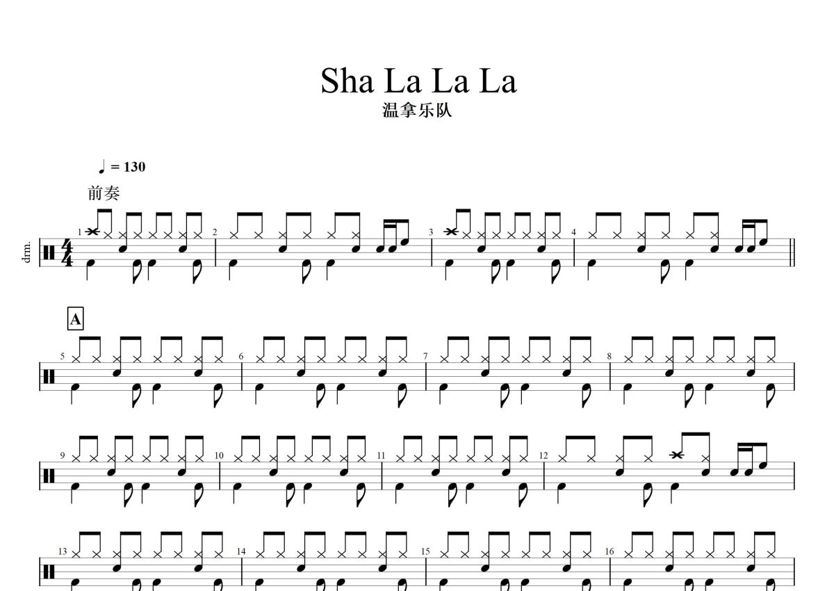温拿乐队《Sha la la la》鼓谱 - 架子鼓谱