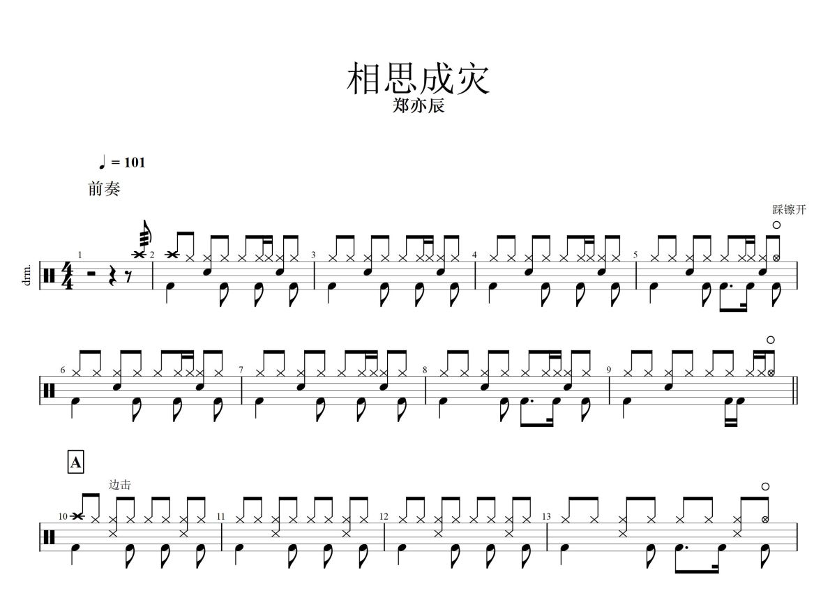 郑亦辰《相思成灾》鼓谱 - 架子鼓谱