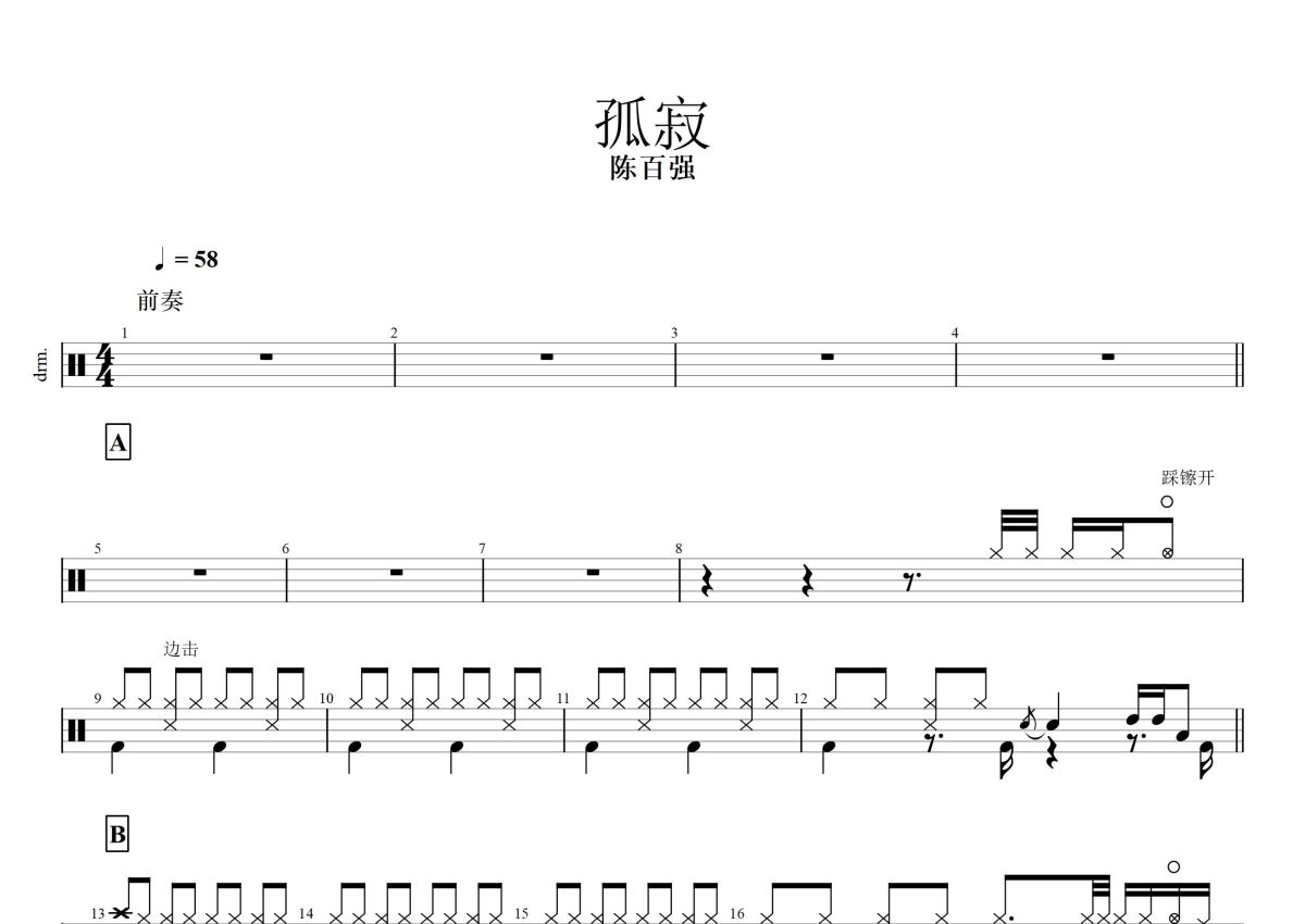 陈百强《孤寂》鼓谱 - 架子鼓谱