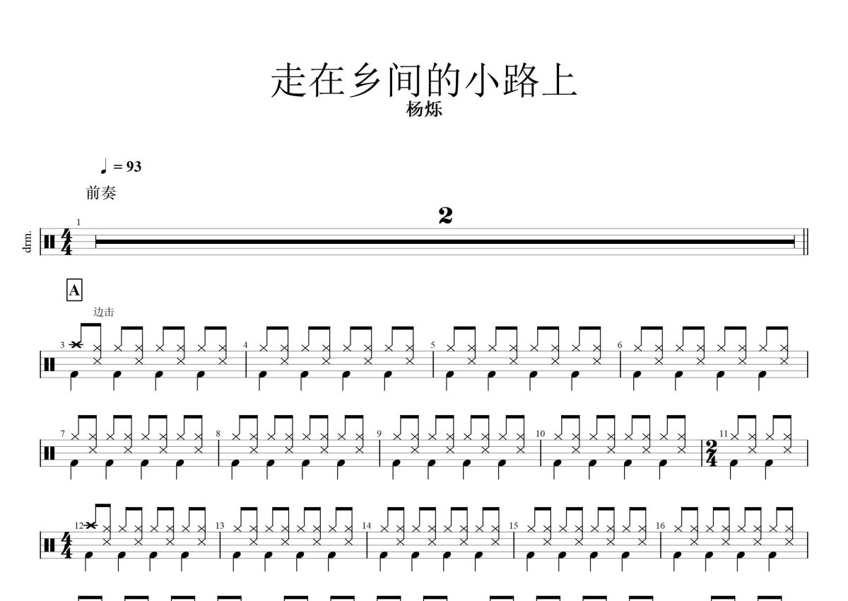 杨烁《走在乡间的小路上》鼓谱 - 架子鼓谱