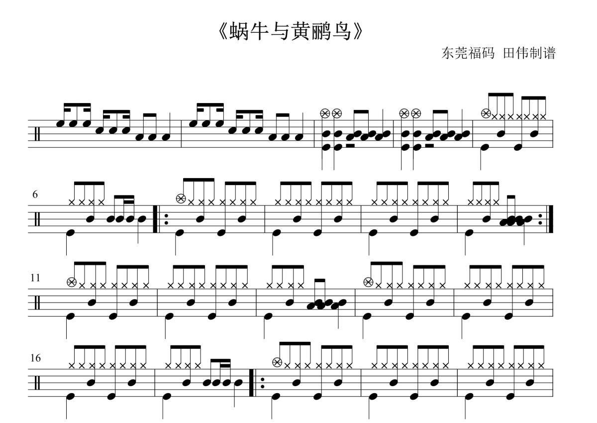 左宏元 作曲《蜗牛与黄鹂鸟》鼓谱 - 架子鼓谱