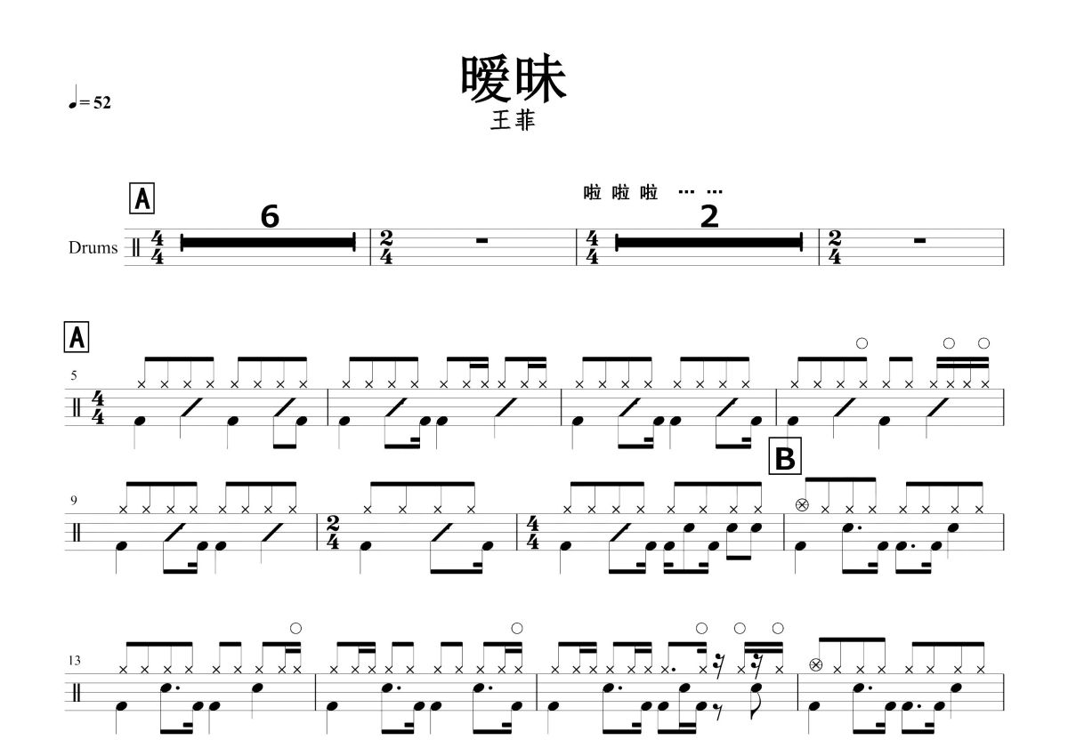 王菲《暧昧》鼓谱 - 架子鼓谱