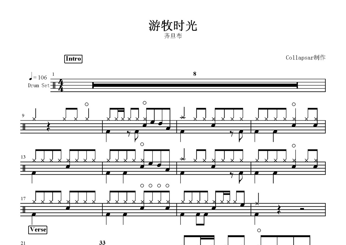 齐旦布《游牧时光》鼓谱 - 架子鼓谱